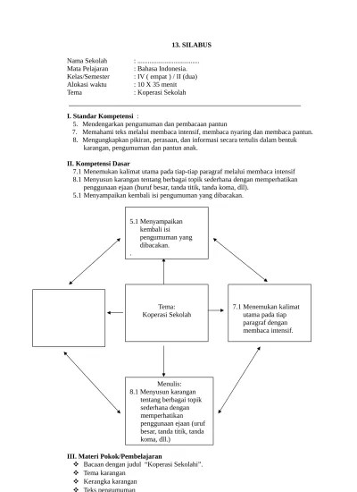 Berikut ini adalah dokumen contoh silabus untuk mata pelajaran bahasa inggris kelas 4 sekolah dasar.